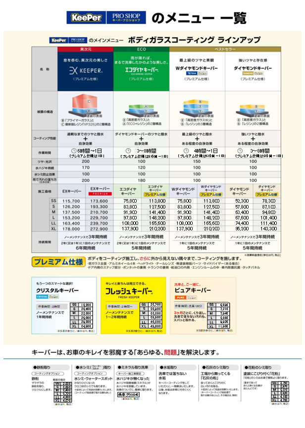 ボディガラスコーティングラインナップ